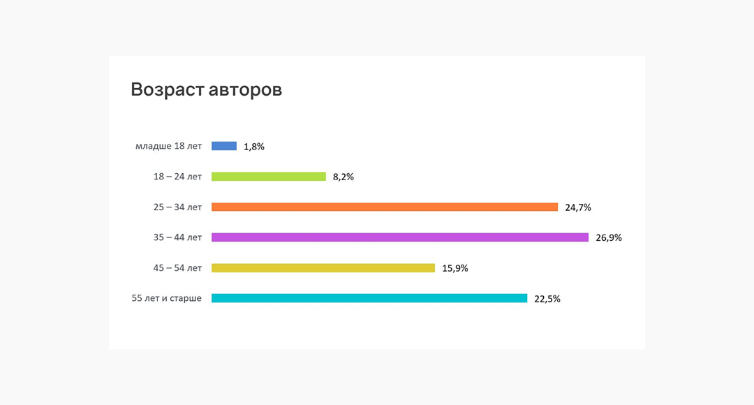 Провели исследование целевой аудитории с использованием отчета "Авторы", уделив внимание отзывам и мнению реальных клиентов. Результаты показали следующую картину аудитории конкурента: